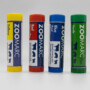 Cartucho de cera tipo bastão de 57g nas cores amarelo, verde, vermelho e azul.